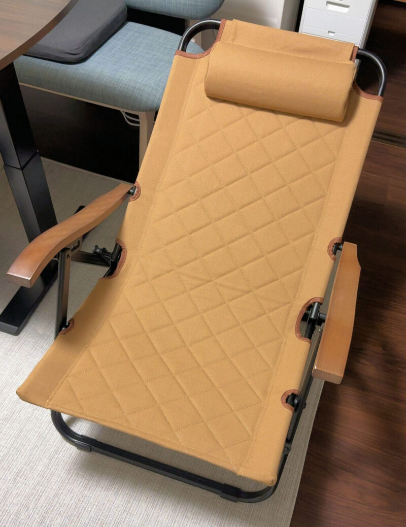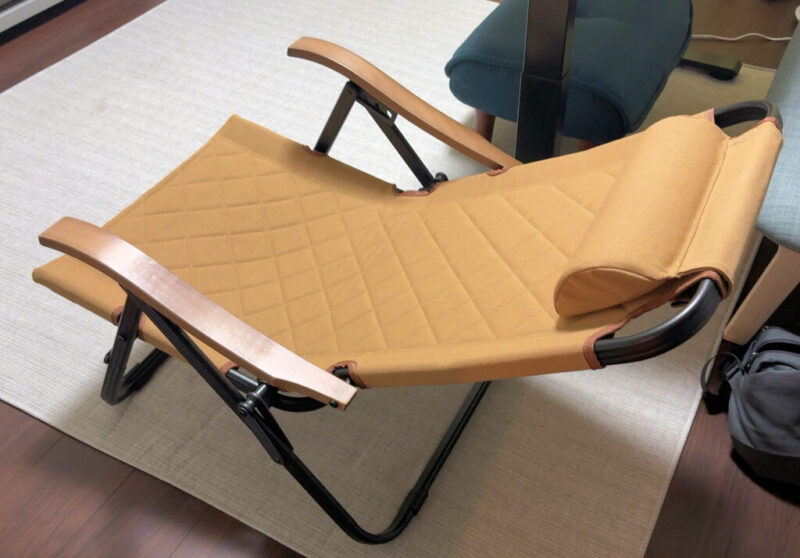 アウトドアで使うような折り畳み式のリクライニングチェアである